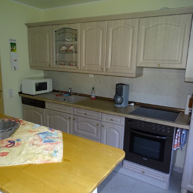 Die geräumige Küche ist vollständig eingerichtet. Dazu gehören selbstverständlich ein Toaster, eine Kaffemaschine, eine Spüle, ein großer Kühlschrank, ein Geschirrspüler, ein Elektroherd und eine Mikrowelle. Spül- und Geschirrtücher sind ebenfalls vorhanden.