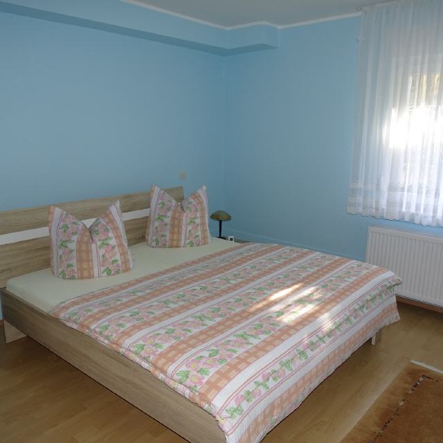 Im gemütlichen Schlafzimmer befindet sich ein großes Doppelbett mit zwei Nachttischen, sowie ein Kleiderschrank mit ausreichend Platz für Ihr Reisegepäck.